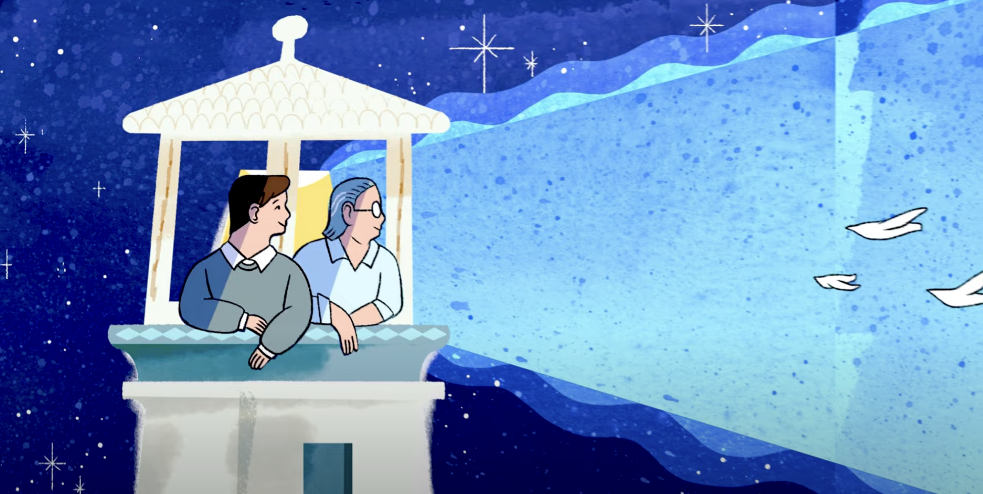 Jobim flies from Ipanema, Singing and watching the ocean waves Vinicius, his friend, by his side A Brazilian lighthouse like no other